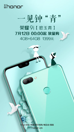 2018年7月12日,荣耀9i碧玉青版已经再次放量发售,目前正在天猫荣耀旗舰店、京东荣耀旗舰店、华为商城、唯品会、国美和苏宁易购热销中。