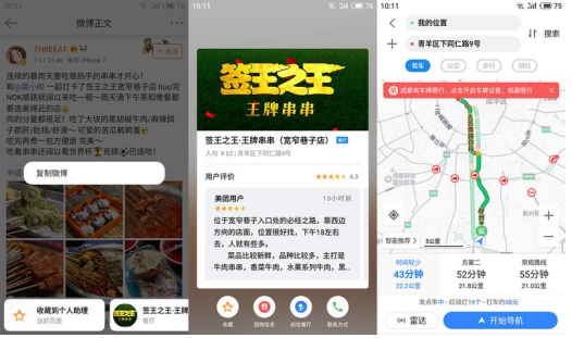 无论是通过浏览器搜索还是刷微博寻找当地美食,当你搜寻到想要前往的美食商户时,只需轻轻长按,Flyme 7智能识屏功能就会智能识别文字中的关键信息,在弹出的窗口中呈现该商户简要信息、用户点评等内容,同时提供联系电话、导航路径以及团购信息等便捷操作。这样你只需要动动手指,跟着导航就能一步直达美食地点,大快朵颐。