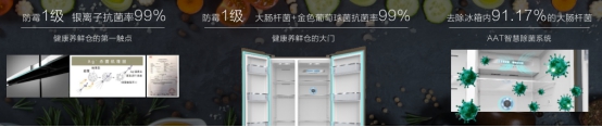 在TCL一体变频风冷冰箱内部,采用AAT智慧除菌系统,通过AAT+智慧风的组合,能够主动去除冰箱内91.17%的大肠杆菌;外部则使用防霉1级抗菌门封,对大肠杆菌、金色葡萄球菌的抗菌率能达到99%;在外部把手上采用防霉1级的银离子抗菌把手,达到灭菌且不伤害正常细胞的效果。多重抗菌保障不仅针对到了冰箱内部食材,更关注到了从冰箱存、取的两个过程,真正做到由外到内、全链条呵护用户健康。