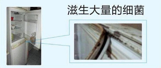 很多人习惯把冰箱当做食物的保险箱,总觉得放在冰箱里食物就不会变质、不会腐烂,虽然冰箱冷藏室的温度一般为0℃-10℃,对大多数病菌的繁殖有抑制作用,延缓食物腐化,但是却不会杀灭病菌。根据相关调查数据显示,冰箱内部有80多种病菌,一不小心就会染上乙肝或肺炎;冰箱的门封圈检测出霉菌的几率为83%;冰箱门10扇中有8扇检出了数十万至上千万的大肠杆菌、柠檬酸杆菌和克雷伯氏菌……冰箱内、门封和把手已经成为滋生病菌的重灾区。