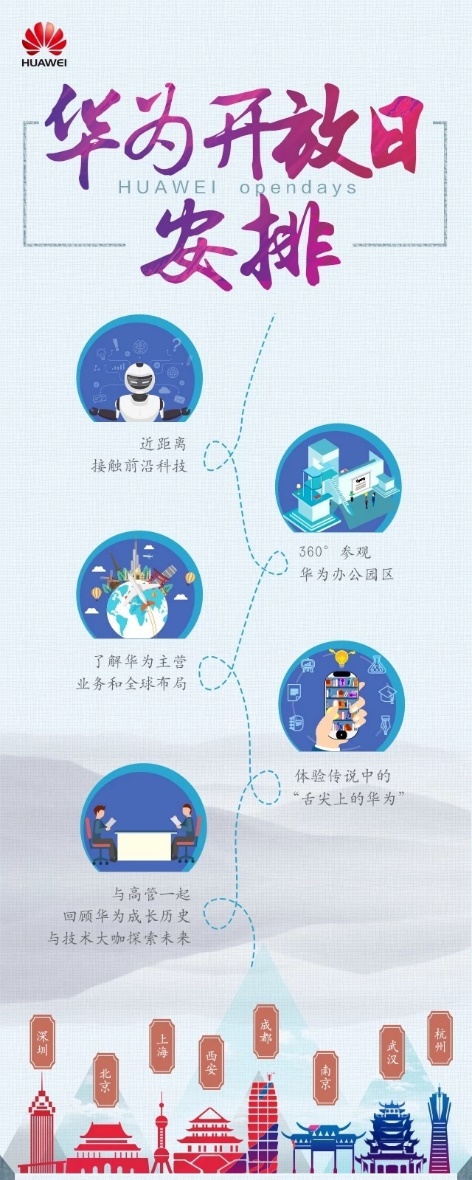华为2019年应届毕业生招聘期间,参加招聘会的学生还有机会在华为开放日期间,360°参观华为办公园区,去近距离感受领先的科技,了解华为主管业务和全球布局,还可以感受一下舌尖上的华为,品尝传说中的华为食堂,和公司的高管一起回顾华为发展历史,与行业大咖并肩阔谈一起探索未知,改变世界。