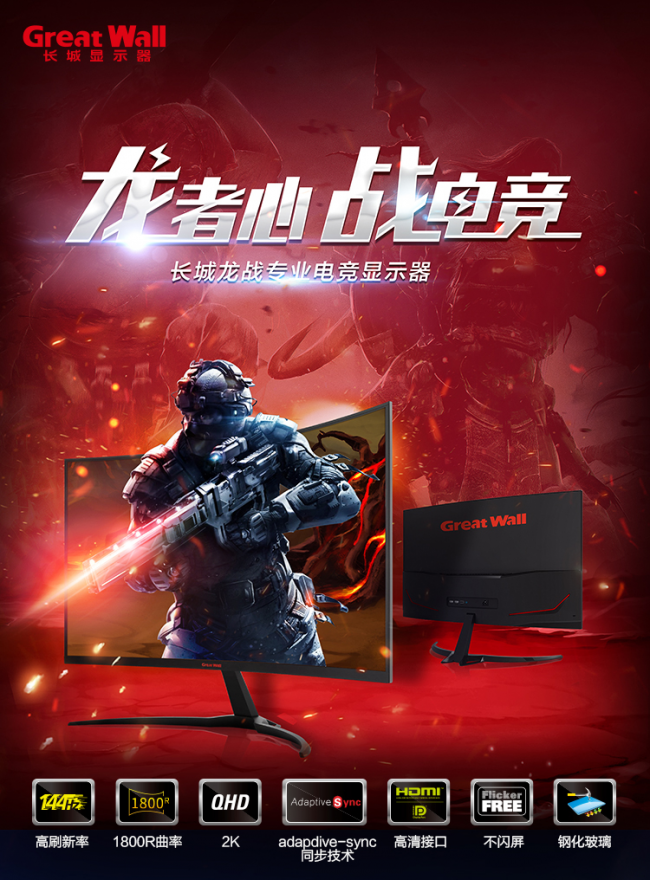 事实是什么?事实是早在八千年前,中华民族就创造了龙的形象,并赋予其无所不能的超自然力量,这是中华民族“个人英雄主义”的最初觉醒。千年已逝,龙已然超越本体成为民族之图腾,而作为“龙的传人”,“个人英雄主义”早已深深流淌于中华民族的血液之中,成为抹不掉的民族基因。就在今天,民族品牌Great Wall长城显示器隆重推出了旗下首个电竞系列显示器——“龙战”系列,并为其注入1800R曲率、144Hz刷新率、Adaptive-Sync显示变频技术等电竞基因,旨在以强悍的竞技基因助力玩家“一战封神”,实现中国式个人英雄主义的“孤胆英雄梦”。