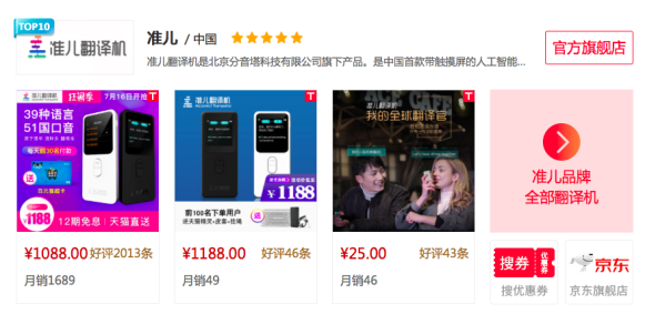 另外,近来在业内频刷存在感的准儿翻译机也似乎风头强劲。然而,在这个人工智能翻译机排行榜单中,准儿翻译机只位列第10名。据小编观察,准儿似乎更多是把精力放在了营销而不是产品上。从准儿近期的公关稿套路来看,无论是明怼还是暗箭,都坚定了要绑定业界老大讯飞翻译机说事儿的决心,也算是玩得一手好“碰瓷营销”。但从长远来看,真正的市场是消费者说了算,产品力才是核心竞争力。