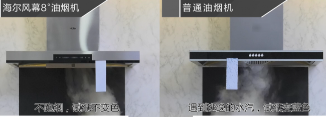 针对油烟侵害皮肤、侵袭用户呼吸道的问题,海尔的工程师在经过上万次的实验与分析后,研究出风幕8°专利技术。近期网上一段名为《1张试纸验出2种油烟机:跑烟VS海尔不跑烟》的视频就验证了工程师努力的成果。