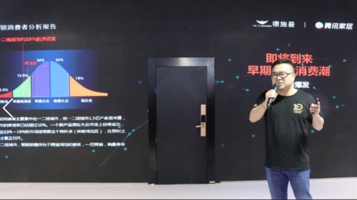 2018年7月8日,中国建博会于广州盛大开幕。7月9日,腾讯家居结合百万用户大数据,联合智能锁领军品牌德施曼在会上发布了《中国智能锁消费者分析报告》,对当今人居生活的升级与改变,以及中国智能锁的应用现状以及未来发展进行了全面解读和深度分析。