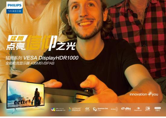 拥有127年品牌积淀的飞利浦显示器,精准洞察用户需求,不断推出深受玩家认可的专业电竞显示器,近期,飞利浦显示器全新推出一款43英寸大屏的4K+HDR1000的多重Buff加持的产品——猛腾机皇436M6VBPAB,为玩家解决游戏操作中头疼的问题。它有4K+HDR1000+QD量子点技术,给玩家带来更绚丽的游戏视界,还是飞利浦独有的Ambiglow流光溢彩等一系列创新技术......让玩家在酣战之中真正的竞情一夏!