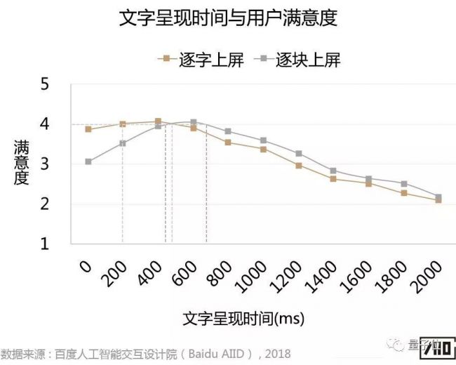 由于逐块上屏方式更接近真实产品的上屏方式,因此建议主要参考400-700ms的呈现时间。需要说明的是,由于实时上屏的方式允许用户在输入语音指令过程中就可以查看已经上屏的文字,这与整体识别后上屏的方式明显不同,因此,如果产品采用的是整体识别后上屏的方式,不建议参考本部分实验的结论。