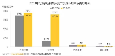 近日,国内权威数据研究机构Quest Mobile发布了《中国移动互联网2018半年大报告》,报告指出2018年上半年国内移动互联网整体发展增速放缓,在移动互联网整体用户增长收窄的情况下,短视频行业在2018年上半年净增了9000万用户,当前短视频月活跃用户已突破5亿,在我国移动互联网11亿用户的基础总量下,每2个互联网用户就有1人在使用短视频App。
