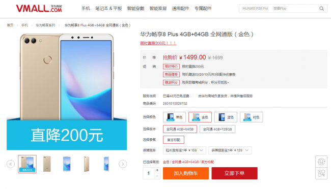 在中移动智能硬件质量报告中取得通信综合能力第一,以及整机评测综合成绩亚军的华为畅享8 Plus,拥有诸多强悍配置和创新功能。如超清全面屏、大内存、大电池、高清四摄等等,让这款手机具备了旗舰属性,从发布至今无论是销量还是口碑均有极佳表现。而随着此次暑期抢购活动的全面来袭,华为畅享8 Plus直降200元,4GB+64GB版本原价1699元,现仅需1499元。4GB+128GB版本原价1899元,现仅需1699元,更适合手头并不宽裕而又注重质价比的年轻消费者购买。