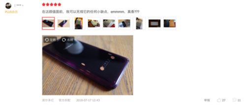 不少用户在购买到Find X之后都会选择评价分享自己的感受,为新手机拍一张美图来作为晒单图片也慢慢成为了一种潮流。数据显示在所有的用户评价中,晒单评价的占比最高,可见绝大多数用户都选择在上手的第一时间来分享自己的喜悦。另外还有很大一部分用户选择在使用一段时间之后以追评的形式来细致的分享自己的使用感受,更好的帮助其他用户来了解Find X这款产品。