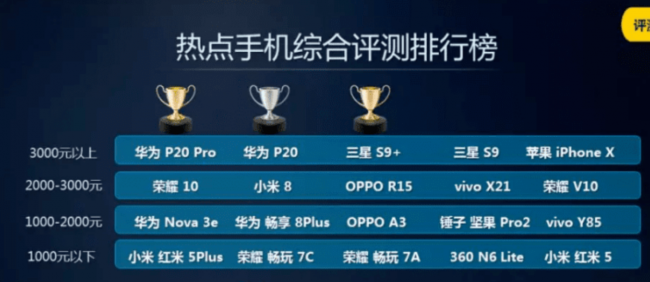 根据该报告,华为公司的三款手机P20 Pro、荣耀10和Nova 3e分别占领了1000-3000元档位的冠军宝座,1000元以下的桂冠则被红米5Plus摘取。如果看前五强,华为和荣耀品牌的上榜数量高达9个,几乎占据了全部上榜机型的半壁江山。