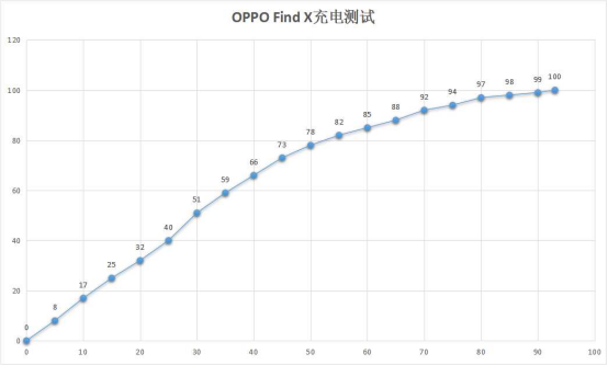 实测OPPO Find X标准版从0电量充到100%电量非常迅速,前30分钟的充电速度堪称极快,10分钟17%,20分钟32%,30分钟51%,基本上喝杯茶的时间也能让你的Find X快速复活。特别是VOOC闪充支持边游戏边快充,哪怕电量只有5%,你也可以美滋滋地继续打游戏,丝毫不会受到影响。而即将到来的Find X超级闪充版更是搭载高达50W功率的SuperVOOC超级闪充技术,35分钟即可充满一部手机,让人十分期待。