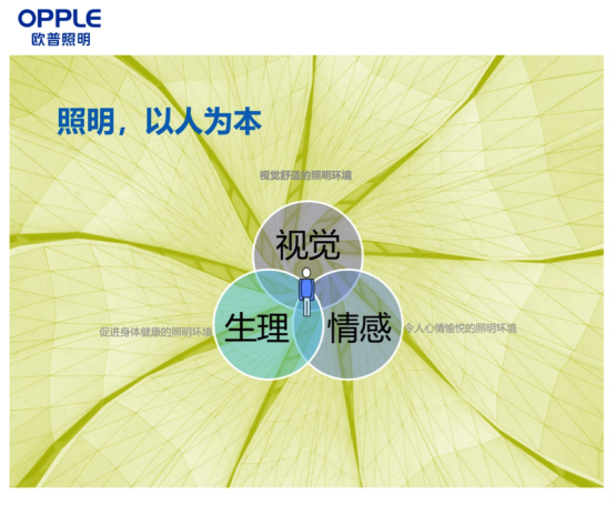 随着物联网、人工智能的不断发展,欧普结合自身的研究,针对不同的人群,不同的场景,从视觉、生理、乃至情感,洞察消费者的深层需求,全面考虑照明的各个设计要素,提供有针对性的解决方案,创造出一个让用户视觉舒适、身体健康、身心愉悦的照明环境。