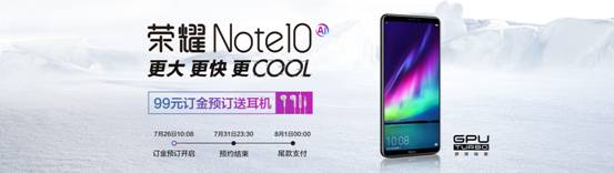 目前,荣耀Note10已在华为商城、京东商城、天猫商城等平台开启了定金预约通道,用户仅需支付99元即可提前预订,并还将获赠耳机一副,不妨抢先下手吧!