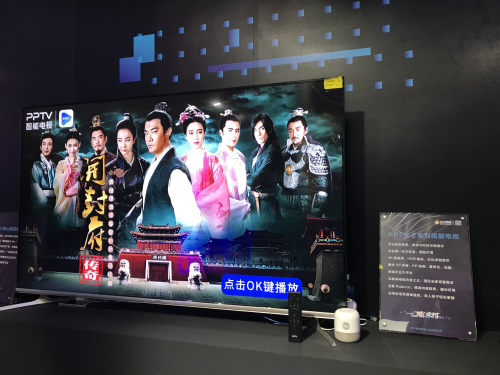 体验完苏宁小亮之后,记者注意到,展区竟然有一台全面屏超薄PPTV智能电视,如此高的颜值着实吸引人。据工作人员透露,这就是今天官方正式发布的新品旗舰智能电视,不仅是高颜值内容王,配置方面也绝对一流,相当惹人注目。