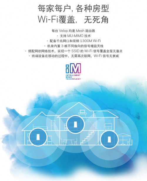 Velop双频版Mesh路由是领势Linksys今年全新推出的一款适合家庭场景的组网路由,而除了家长管理功能外,Velop双频版自身还是搭载智能Mesh技术的组网路由。使用Velop双频版路由器可以在家庭场景对全屋网络进行覆盖,并且实现对网络的统一管理,无论是网络的体验还是管理都可以更加智能且高效。