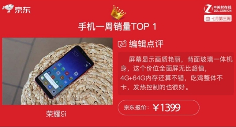 深受用户喜爱的荣耀9i,能在发布后第二天获得京东、天猫双平台手机单品销售冠军也在情理之中。此后,荣耀9i还在2018年京东的618购物节(6月1日~18日)中,荣耀9i就获得了1000-1500元价位段新品销量冠军,因为荣耀9i在6月7日才正式发售,这个冠军自然含金量更高。在7月第三周时,荣耀9i销量超过小米8、iPhoneX、vivoNEX获得了京东一周销量冠军。