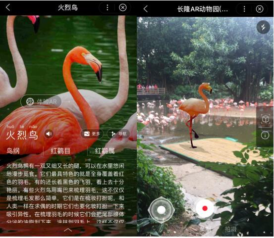 据介绍,长隆AR动物园智能小程序是一款融合了AR渲染、图像识别等多项百度AI技术的智能小程序,目前已经上线的一期功能包含:动物解说、AR相机和步行AR导航三大功能。其中,“动物解说”能够以自动朗读的方式让用户在游览中学习动物知识;“AR相机”则实现了虚拟与现实的紧密结合,游客无论是否在园中游玩,都可以随时随地观赏珍稀动物,与AR珍稀动物趣味互动,并将这些动物与身边的环境融为一体,拍摄合影照片;步行AR导航不但形象化的展示园区所有场馆,还能通过动态引路的方式帮助用户快速找到目的地。