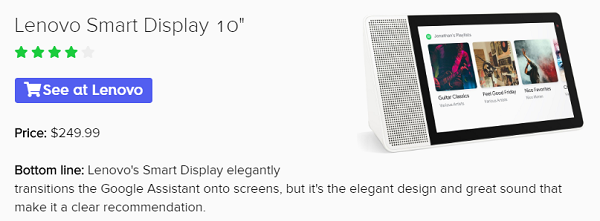 联想Smart Display拥有10英寸和8英寸屏幕两个版本,售价分别为249.99美元和199.99美元,目前已经在美国市场开始销售。