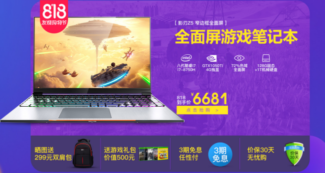 苏宁818作为中国电商行业的三大购物节之一,对于消费者有着很大的吸引力。为了提前给用户带来优惠体验,8月1日-8月4日,苏宁易购818首波优惠活动,火影游戏本也同时开启了“火影发烧日”活动,多款产品爆惠来袭,活动期间满5000元立减618元,同时赠送价值500元的游戏大礼包,晒单更有价值299元的双肩包赠送,如此钜惠,对于想要在开学前购机的大学生们可谓是超值福利。