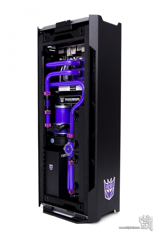 水冷组中的冠军ilas作品Decepticons 狂派,以变形金刚为主题,整体采用黑紫狂派色调,以华硕ROG STRIX Z370-I GAMING主板为核心,采用细高型的机箱+独具匠心的水路设计,尽显低调奢华。