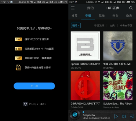 曾几何时,HiFi发烧友还只是一个比较小众的群体,但随着大家对音质的追求不断提高,“最大程度地还原音质”已经逐渐成为大众听歌的品质要求。即日起,下载VIPER HiFi还可一键领取2018年全年免费套餐成为HiFi会员,获得试听和下载CD、Hi-Res和DSD歌曲等会员特权。别犹豫,赶紧下载VIPER HiFi最新版,体验极致无损原声吧!
