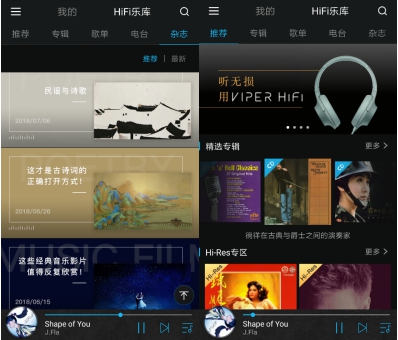 VIPER HiFi 2.0除了为用户提供音响性和音乐性俱佳的HiFi专辑和歌单外,每周还更新1-2篇音乐杂志,由专业的音乐编辑推荐评析音乐和科普HiFi知识,让用户在享受高品质音乐体验的同时,学习更多专业小知识。