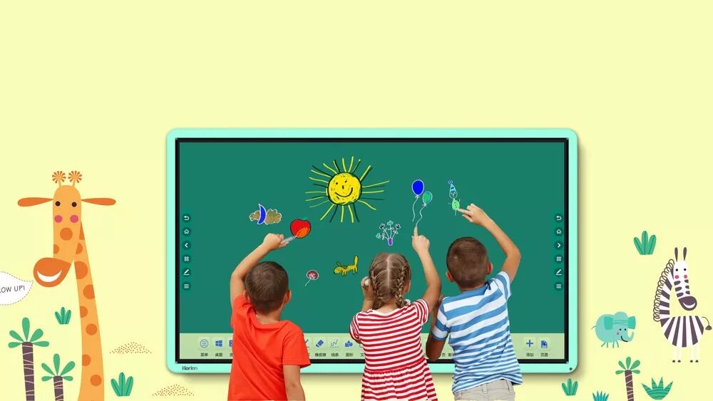 传统的幼儿教育机构喜欢放一块“小黑板”,我们的童年也都是在黑板粉尘中度过,但现在有了皓丽教育一体机,就再也不用忍受粉尘的危害。它自带白板书写功能,可以用智能笔,甚至是手在机器上随心书写、绘画、批注,错了用手背轻轻一擦,还可以放大、缩小、旋转图像,最多支持十人同时书写,小朋友们可以愉快地写写画画,再也不用担心衣服弄脏或者粉尘吸入口鼻危害健康了!