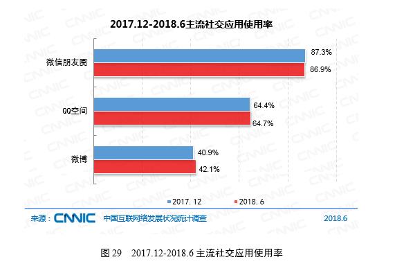 新浪科技讯 8月20日下午消息,中国互联网络信息中心(CNNIC)发布第42次《中国互联网络发展状况统计报告》,截至2018年6月30日,我国网民规模已达8.02亿。随着短视频和MCN 机构的兴盛,微博在粉丝互动和内容分发等方面的价值进一步强化,用户使用率为42.1%,较2017年末增长1.2个百分点,用户规模半年增长6.8%。