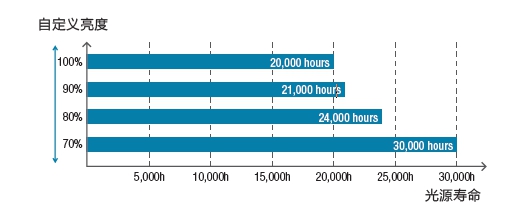 面对复杂的展示环境,企业用户需要更加精准的调节亮度,为消费者提供更加舒适的观赏体验。爱普生CB-L600系列投影机为企业用户提供了自定义亮度设置功能,用户可以在亮度100%~70%之间进行精确到1%的亮度调节,同时还可以选择亮度恒定模式,保证使用期间亮度无衰减。