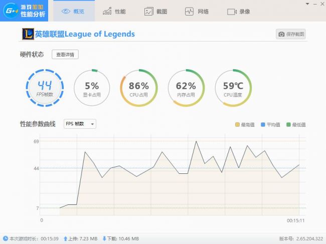 首先测试的是无论上班族还是学生朋友都喜欢玩的《英雄联盟》,为更好地测试出这款小麦6A的游戏性能,所以小编用全特效来进行测试。可以从游戏画面看到FPS基本稳定在45-60帧左右,游戏运行佷流畅,而游戏中的温度也控制得很稳定,仅在50-60°左右。