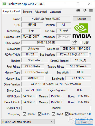 市场上很多全面屏轻薄本,为了更加便携的外观,便把显卡都舍弃了,图形处理性能只能依赖性能孱弱的集成显卡,而麦本本小麦6A则不同,小麦6A选用MX150 满血版2G独立显卡,而满血版就是英伟达的25W版显卡,能够酣畅淋漓地运行起市面上的主流游戏。