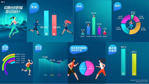今天(8月28日),咕咚发布了一份关于“跑友”们的调查,数据显示54.6%的跑友为男性,跑龄2-3年的占比最高达到33.5%,每天跑步1-1.5小时的人群最多,跑步省份分布前三的城市分别为广东省、浙江省、江苏省,这些人群中超过60%都不会佩戴专业产品,而令人惊讶的是有将近55%的人曾在跑步中受过伤。相信很多人都没想到,本来以强身健体为目的,最终却换来了一身伤痛。