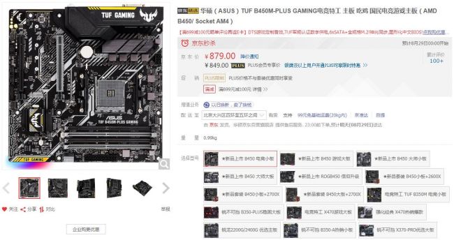 目前,TUF B450M-PLUS GAMING主板参加满699减100元活动,8月29号更有限时秒杀特惠,按规则评论晒单还可获赠200元E卡。