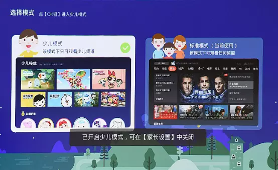 值得一提的是,神画Q+还提供标准模式、少儿模式两种操作系统,少儿模式下只可观看少儿频道。还支持家长进行播放时长、播放内容的监管和控制。