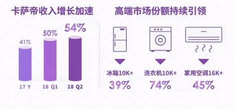中怡康数据显示,2018年家电行业整体增速放缓:1-6月冰箱零售额同比增长7.9%,创同期增速新低;洗衣机市场整体零售量也微幅下滑;厨电市场在上半年均出现不同程度负增长……在此市场境况下,卡萨帝却再次逆势取得高速增长,第二季度单季度更是实现54%的增长。专家分析,卡萨帝之所以能以高价位段在行业实现绝对引领,是多维发力造就的必然成果。