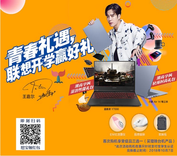 今年联想返校促销推出了挖宝赢好礼的活动。即日起至9月30日,扫描二维码,挖宝抽奖,即可获得10元、20元、50元、100元、200元、500元购机优惠券, VIPKID线上课程,电影券等多重好礼。 与此同时,购买潮尚学风礼包,最高可享有500元的现金优惠。