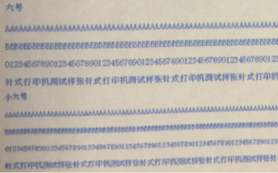 通过对比四款机型第3联样张,我们可以看到爱普生LQ-630KII打印的小六号字体较为精准,字体也十分清晰;爱信诺SK-860打印的小六号字体具有一定的辨识性,但是颜色较浅。映美FP-630K+出现了印字污迹,无法辨识等情况。富士通DPK-750虽然出现色点丢失,但是基本上可以辨识。