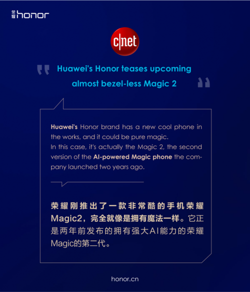 此外,很多业内人士熟知的海外媒体CENT更直指荣耀Magic2是一款像拥有魔法一样的手机:“荣耀有一款非常酷的手机,完全就像是魔法一样。正如我们所说,荣耀Magic2正式两年前发布的AI手机Magic的第二代”。