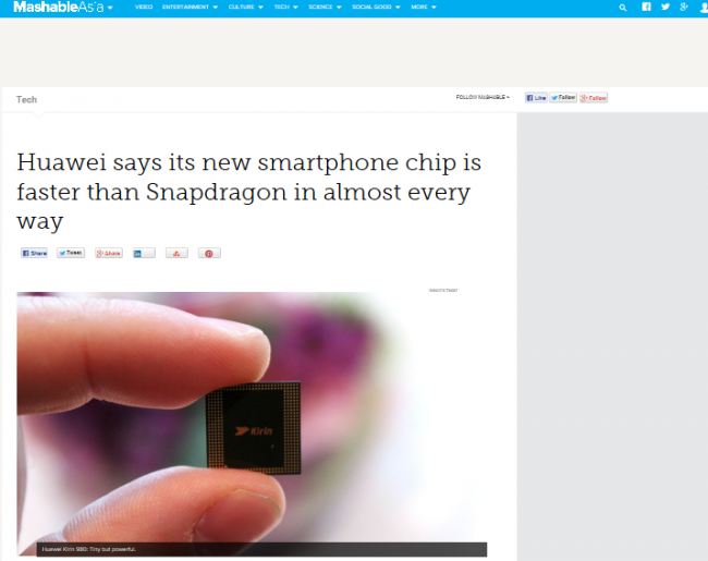 美国知名科技网站Mashable表示,多年来我们已经习惯于两大智能手机SoC芯片角逐霸主地位:苹果的 A 系列芯片和高通的骁龙 8xx 系列,但华为的麒麟 980 蓄势待发,将打破两大巨头垄断的局面。