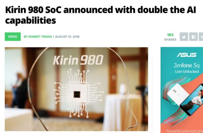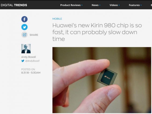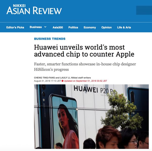 Nikkei Asian Review(日经亚洲评论)在报道中表示:华为的麒麟 980处理器芯片组是世界上首款配置两个神经网络处理器 (NPU) 的手机芯片,堪称目前业界最先进的手机芯片。