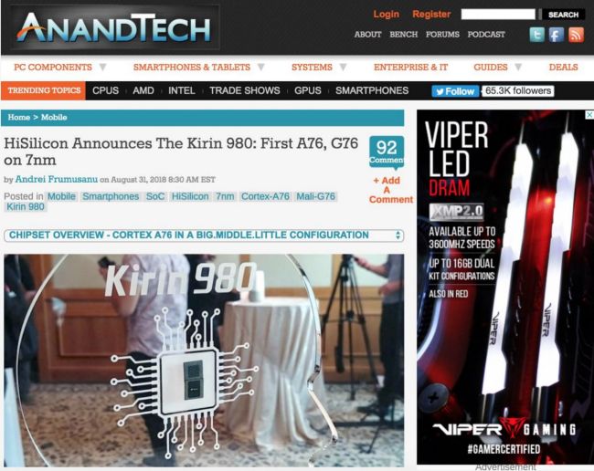 作为全球No.1评测网站,AnandTech对华为麒麟980也给予了高度评价:所有这些新特性的集合使麒麟 980 处于领先的竞争地位,而将于 10 月 16 日首发的 Mate 20 应该是一款值得期待的产品。