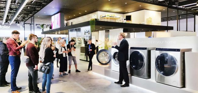 除了智慧家庭之外,海尔展区现场还分别设立冰箱、洗护、娱乐等产品展区,展示各产业线的原创科技产品,并且在现场吸引了众多客商的关注和体验。