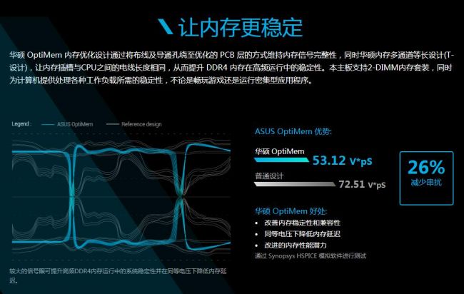 该主板特别具备5重防护III功能, 拥有高品质组件、出色电路设计以及严苛标准,提供 硬件级安全保障。特别是OptiMem内存优化设计,通过优化不同PCB层的内存信号,可显著提升系统的兼容性和稳定性,有效确保玩家长时间稳定畅玩游戏。此外,该主板还板载USB 3.1前置接口和M.2接口,可提供疾速传输。