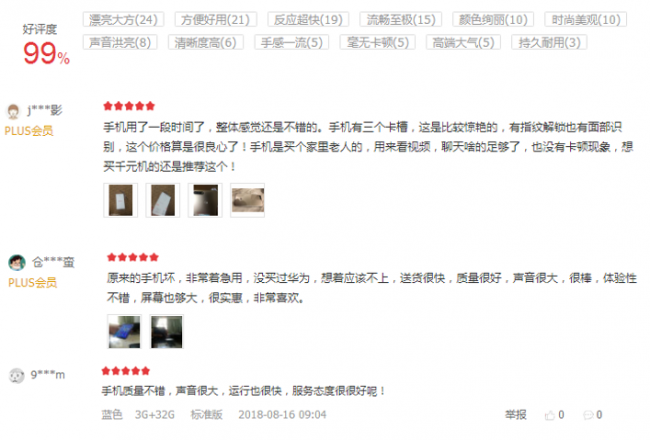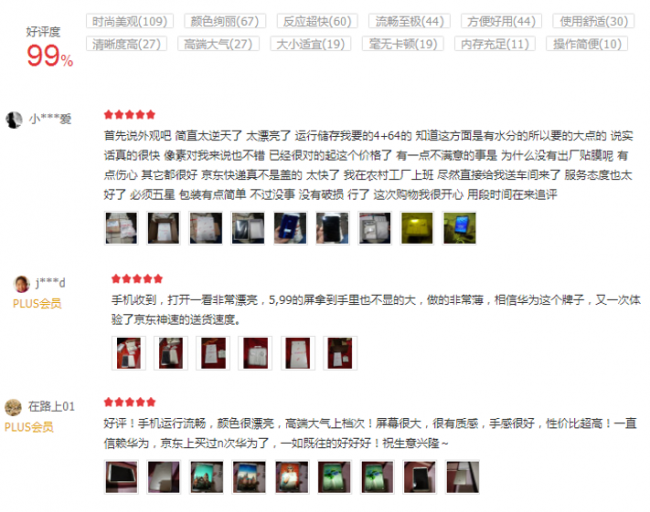 (华为畅享8e京东商城好评截图)