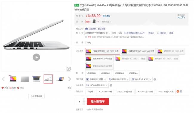 开学季的到来,想必大家也急需快速的进入到学习状态,而除了日常的学习上课之外,可能有的人也会通过追剧放松一下,有的人则会选择杀一场游戏来增强友情,但无论哪种方式,想要在大学中学习娱乐同时无忧,那么一款兼具游戏性能和办公能力的高效率全能笔记本一定不可或缺。但是在目前品质性能多样的笔记本电脑中你又该如何选择呢?为此小编就为大家推荐一款当下新推出的华为MateBook D(2018版)尊享版,它的全能特性即可让你秒变“高效生”,而且现在购买华为MateBook D(2018版)尊享版不仅可享3期白条免息,还可获得价值199元的电脑双肩包,如果你也正有意购买笔记本电脑,那么它一定是你大学学习生活的完美利器!