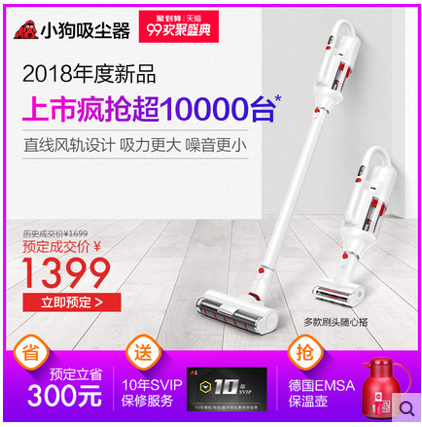 吸尘器的出现让家居生活更加便捷,成为不少家庭的标准配置,随着科技的发展与创新,吸尘器也在更新换代。在有线时代,换一个房间就要换一次插头、一不留心还会绊倒老人和小孩的有线吸尘器,逐渐被轻巧便捷、走到哪里扫到哪里的无线吸尘器而取代。近日,小狗吸尘器正在进行天猫99欢聚盛典活动,各款机型都有不同程度的优惠活动。Pick小狗吸尘器,让家居清洁变轻松!
