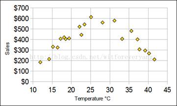 举个栗子,下图中温度和冰激凌销量几乎为0,你能说两者没有相关性吗?