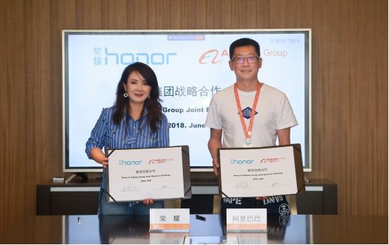 9月10日,荣耀与天猫正式在杭州签署战略合作协议,双方就新品首发、大数据打通、新零售布局、双11大促等方面全面达成深度战略合作。天猫消费者电子事业部总经理吹雪、天猫消费电子事业部手机数码3C总经理铉清,以及荣耀销售与服务部长倪嘉悦、荣耀营销部长王斌等出席了签约仪式。