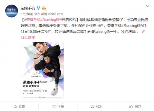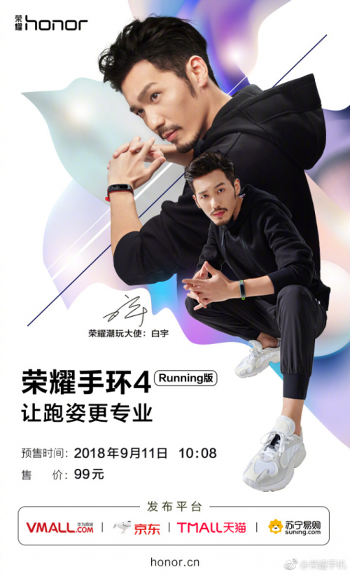今天(9月11日),白宇同款的荣耀手环4Running版正式预售,Vmall商城、京东、天猫、苏宁四大平台同步开启。新品荣耀手环4Running版发布之初受到广泛关注,除了拥有多彩外观设计、两种佩戴方式,荣耀手环4Running版还有十分精准的跑姿数据监测。